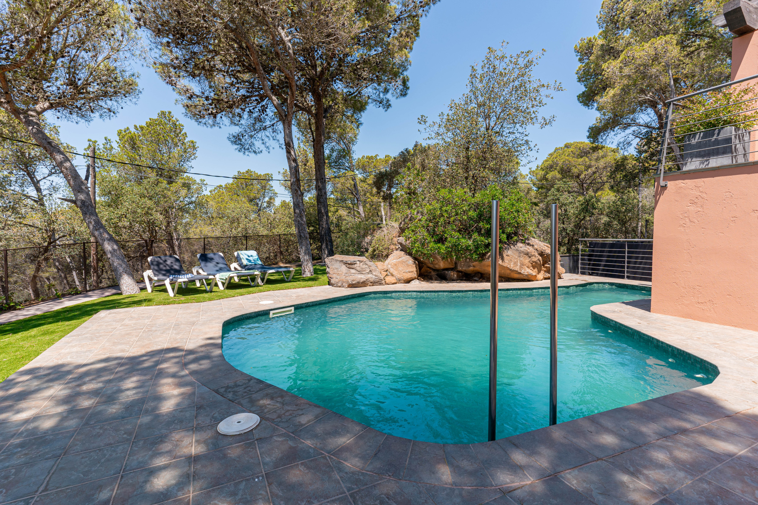 You will undoubtedly spend most of your time outside, relaxing on one of the terraces, chilling in the lounge set or on one of the sunbeds around the beautifully shaped swimming pool. Because the garden is surrounded by the typical pine trees that you find everywhere on the Costa Brava, there are plenty of places in the shade.